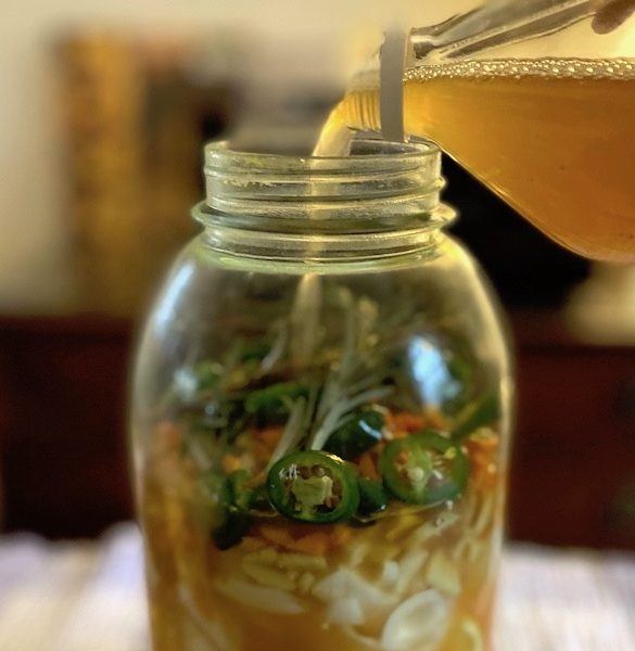 - Fill the jar almost to the top with organic raw apple cider vinegar. Leave 1/2 inch space.